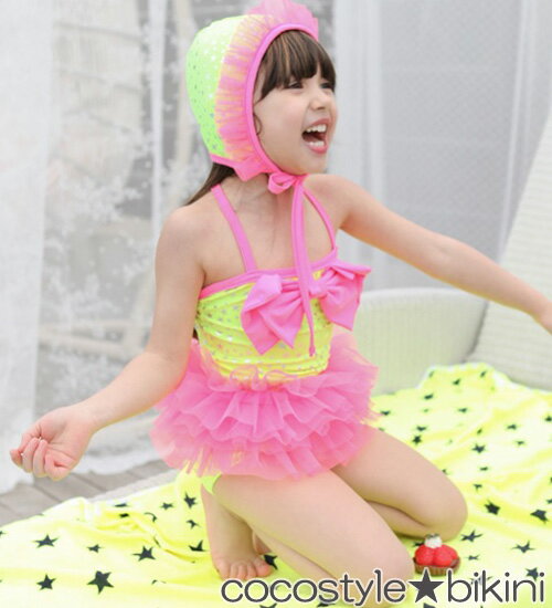 水着/ガールズ/子供/プール/ワンピース/女の子/可愛い/リボン/ボーダー/帽子付き/水泳/スイミング/特典無/MUCHU