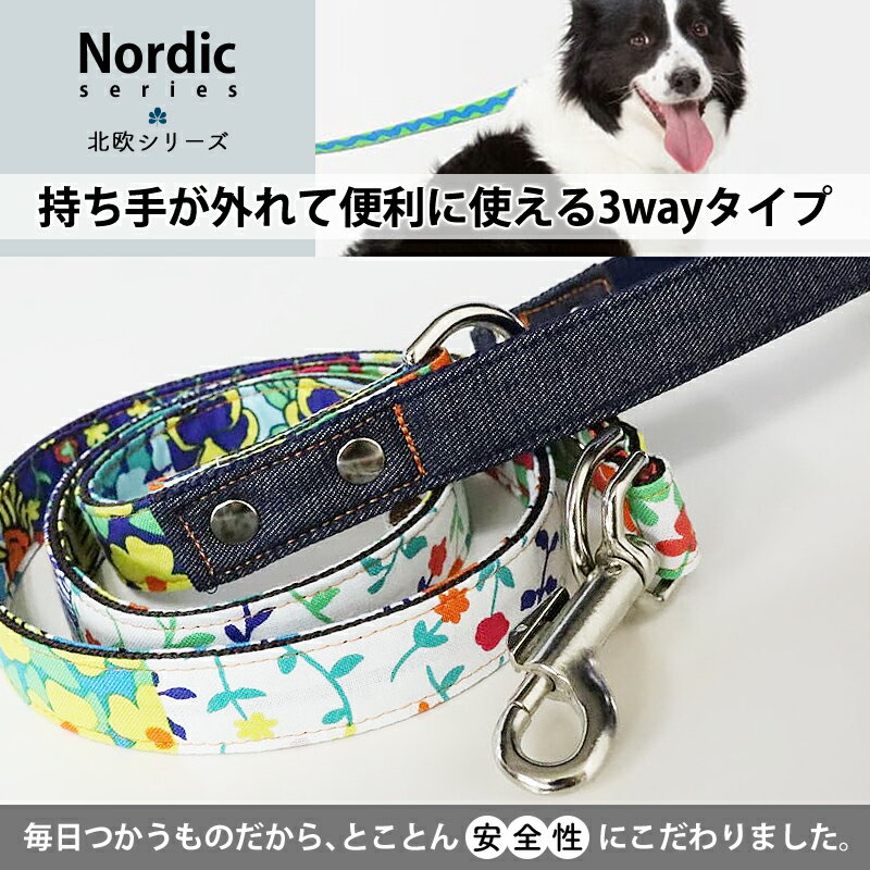 犬 リード 小型犬 中型犬 大型犬 日本製 多機能 ショートリード カフェリード おしゃれ かわいい 水玉 ドット ポップ ナチュラル 3wayシングルリード【北欧ナチュラル】