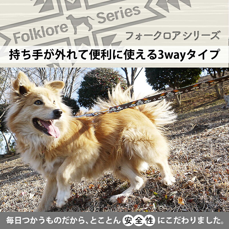 犬 リード 小型犬 中型犬 大型犬 日本製 多機能 ショートリード カフェリード おしゃれ かわいい 名入れ可 迷子札 ネイティブ オルテガ オルティガ エスニック 民族柄 3wayシングルリード【フォークロア】